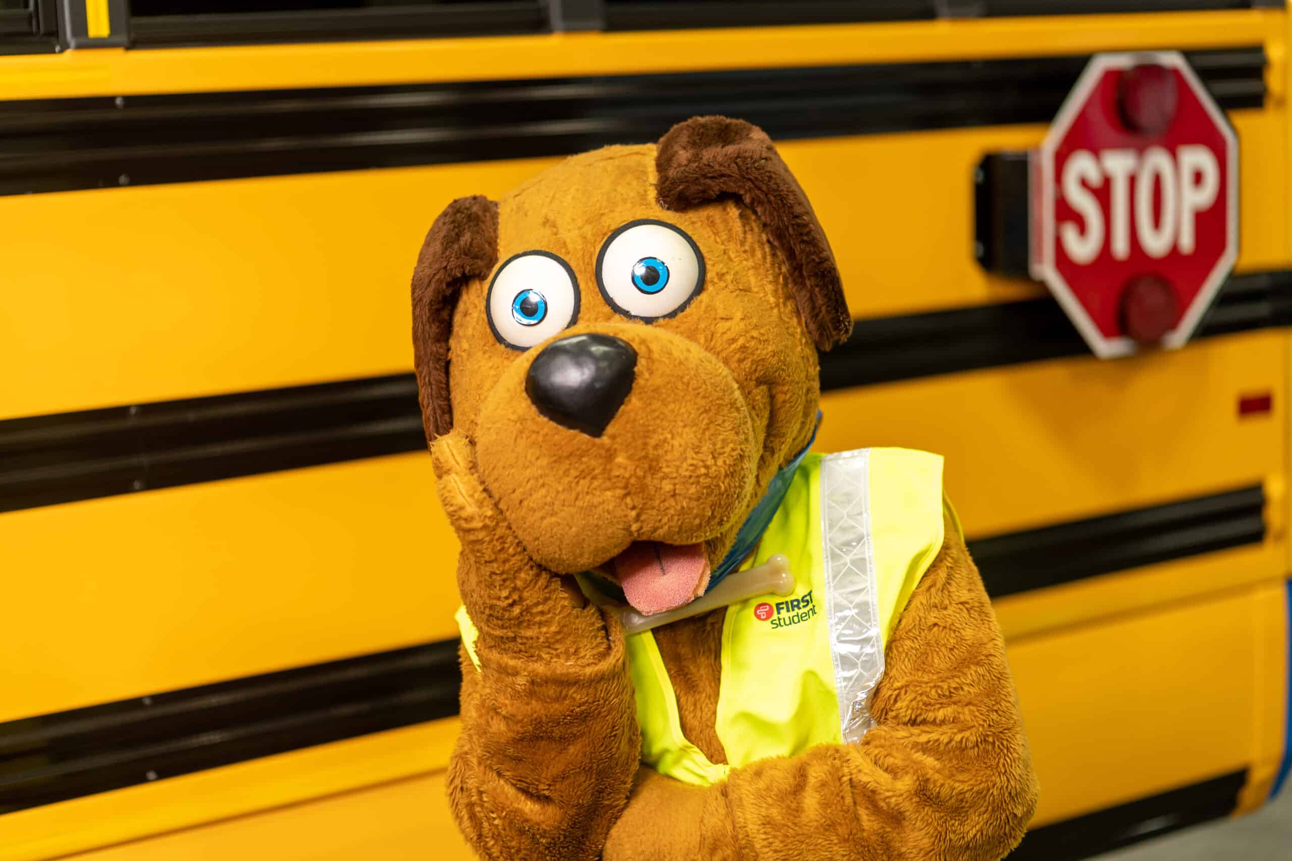 Safety Dog, First Student’s safety mascot, helps students understand the importance of safe school bus behavior in a fun, interactive, and memorable way.